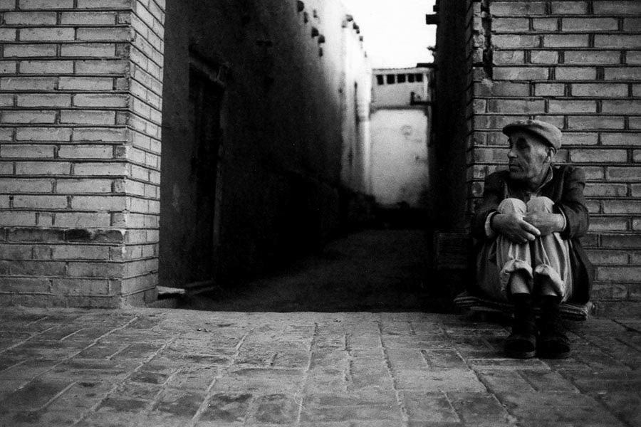 Capturing the essence of Bukhara's rich Islamic heritage - silhouette of a woman in traditional clothes against the ancient streets of this historic city.
